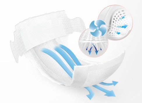 1000 phễu siêu thấm cùng thiết kế rãnh dọc giúp thấm nhanh và dàn đều chất lỏng, giảm độ tiếp xúc giữa da và nước tiểu cho da bé khô thoáng dài lâu.