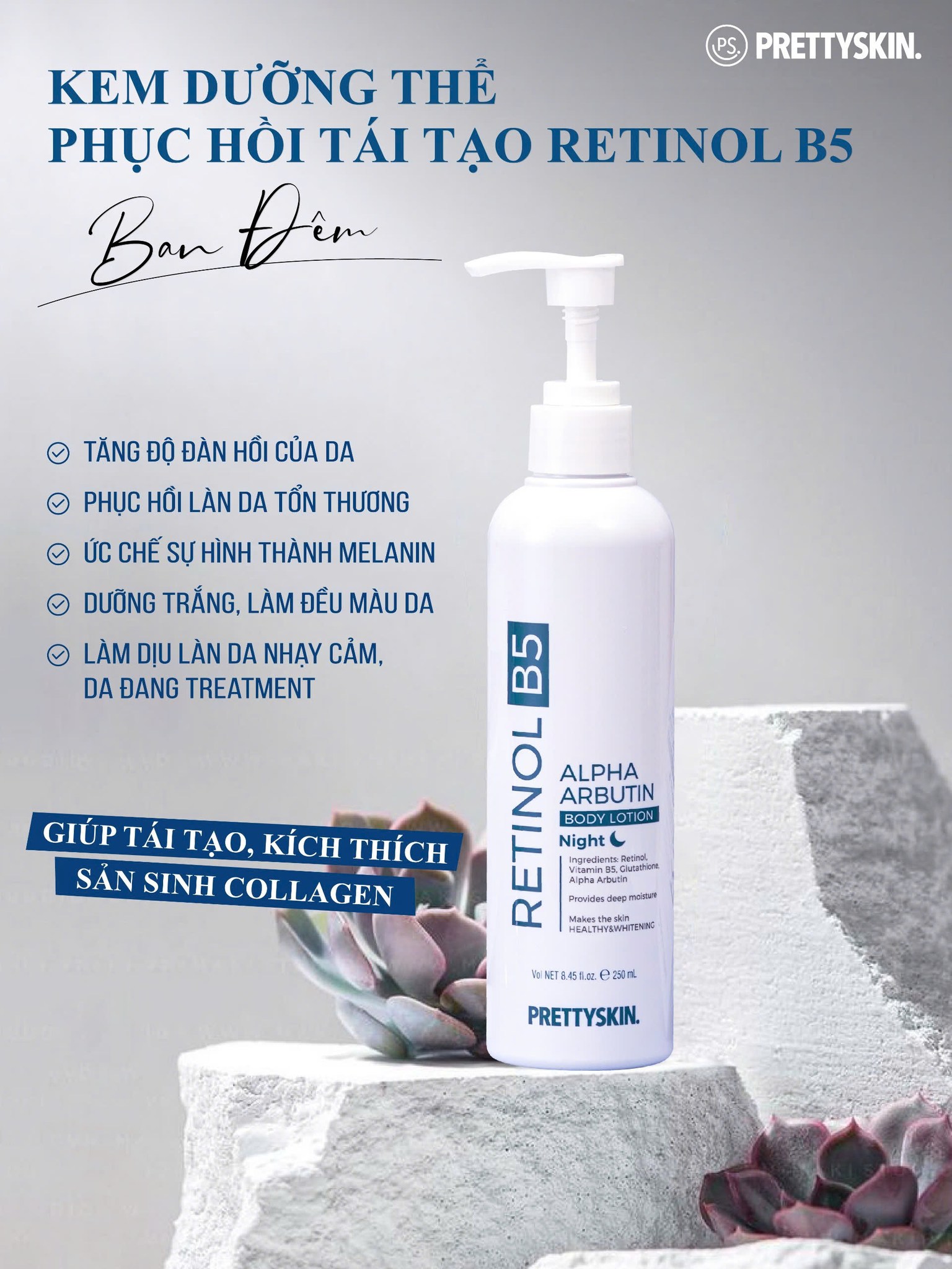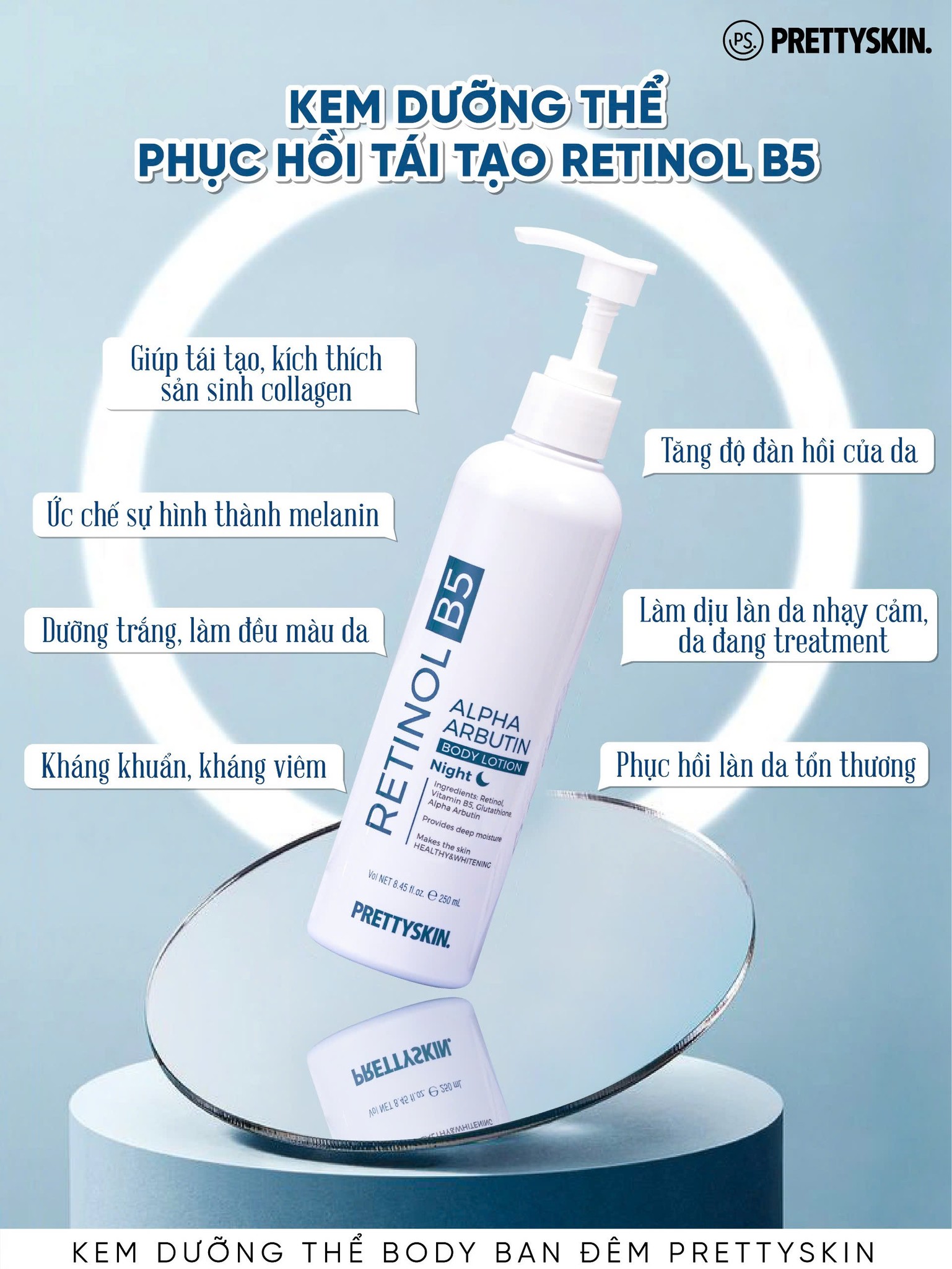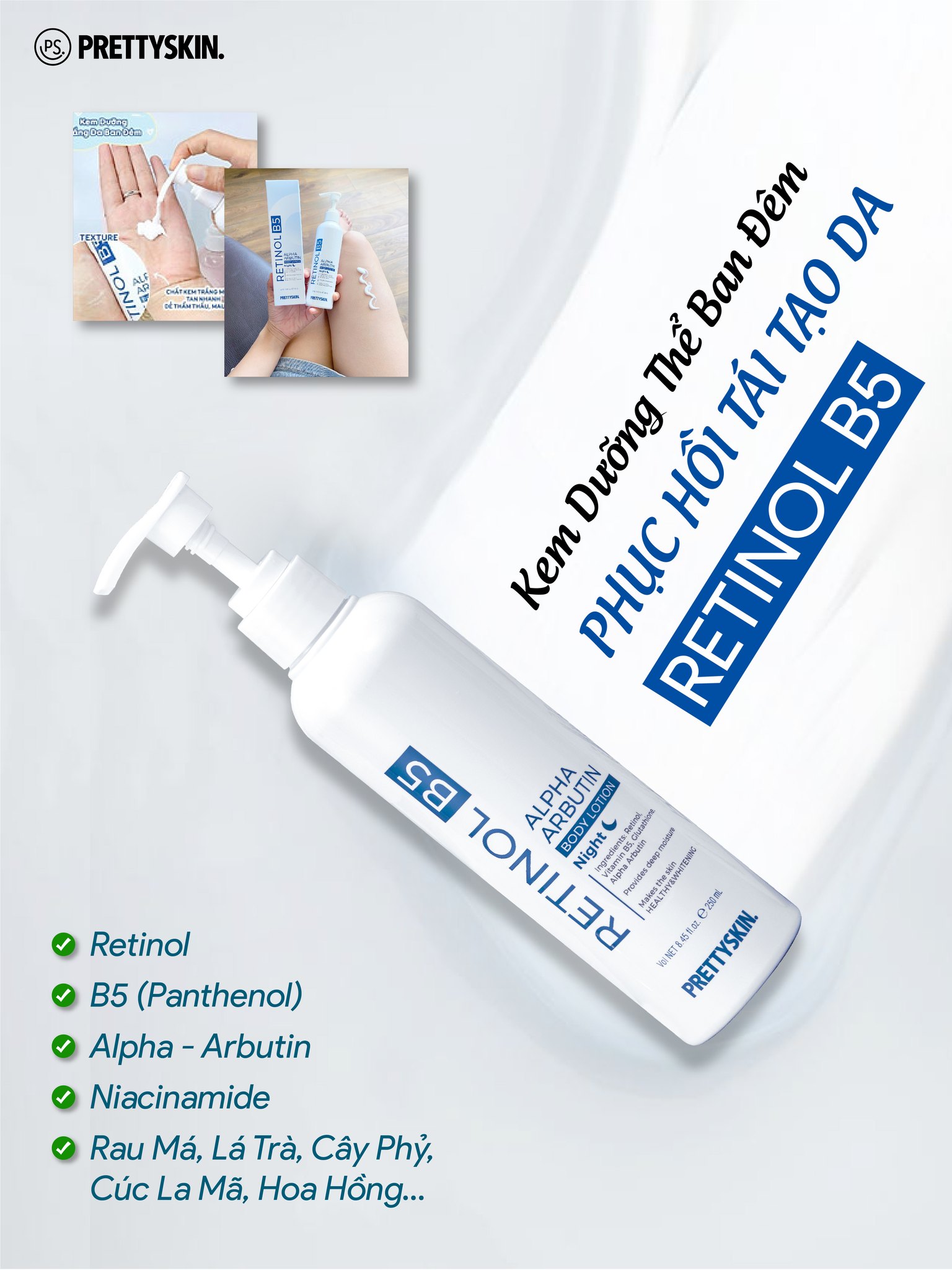 KEM DƯỠNG BODY BAN ĐÊM PRETTY SKIN RETINOL B5 ALPHA ARBUTIN BODY LOTION