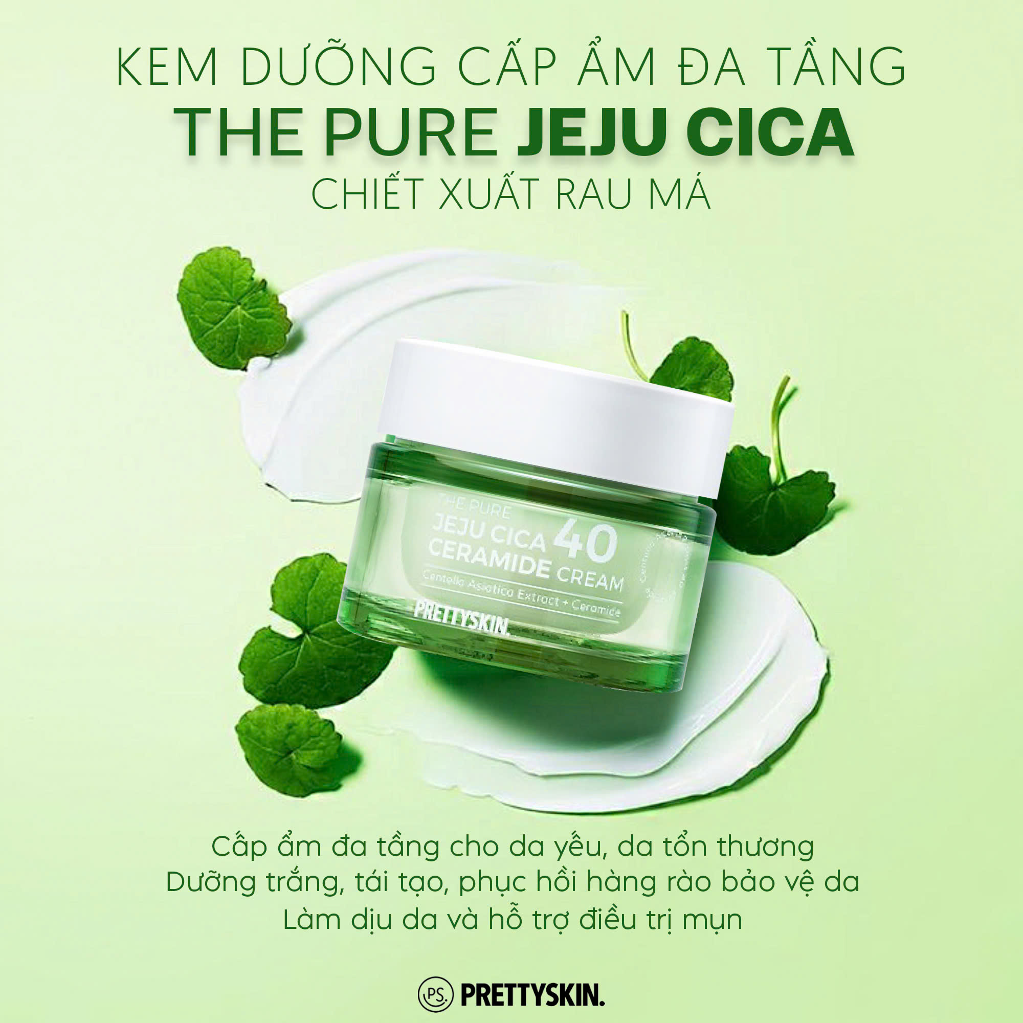 KEM DƯỠNG RAU MÁ PRETTY SKIN THE PURE JEJU CICA 40 CERAMIDE CREAM
