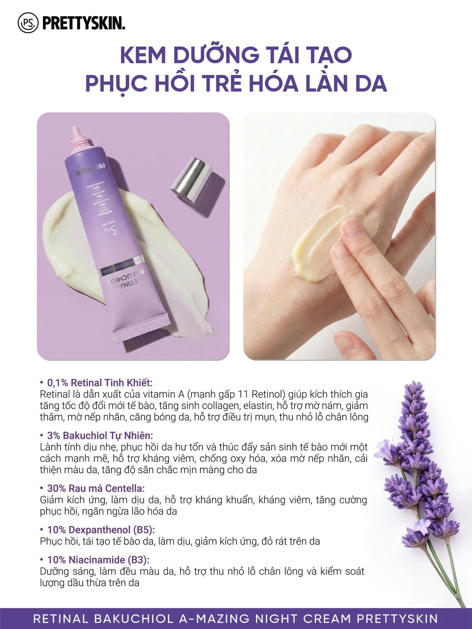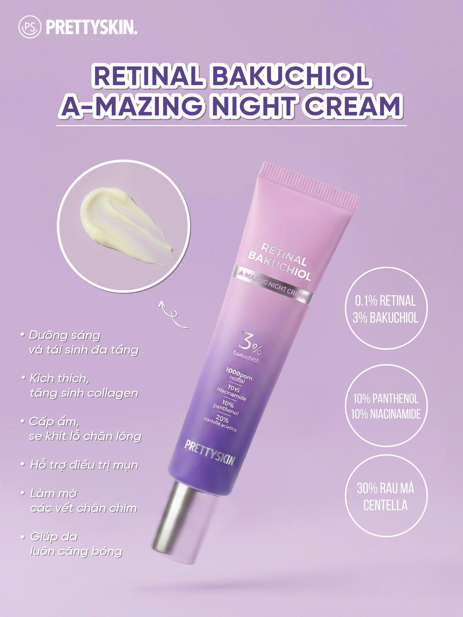 Công dụng Kem dưỡng Retinal Bakuchiol A-Mazing Night Cream Pretty Skin