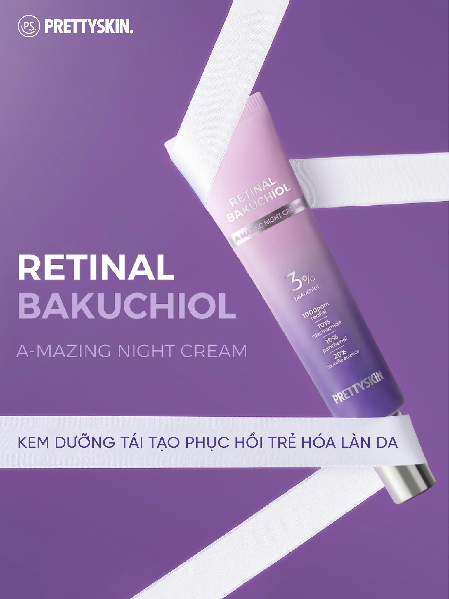 Kem dưỡng Retinal Bakuchiol A-Mazing Night Cream Pretty Skin là dòng kem dưỡng ban đêm giúp tái tạo da – chống lão hóa – làm sáng – phục hồi chuyên sâu nhờ sự kết hợp giữa Retinal thế hệ mới và Bakuchiol thực vật.