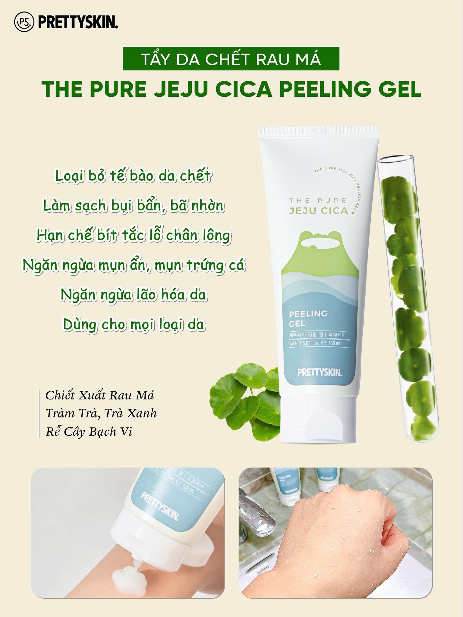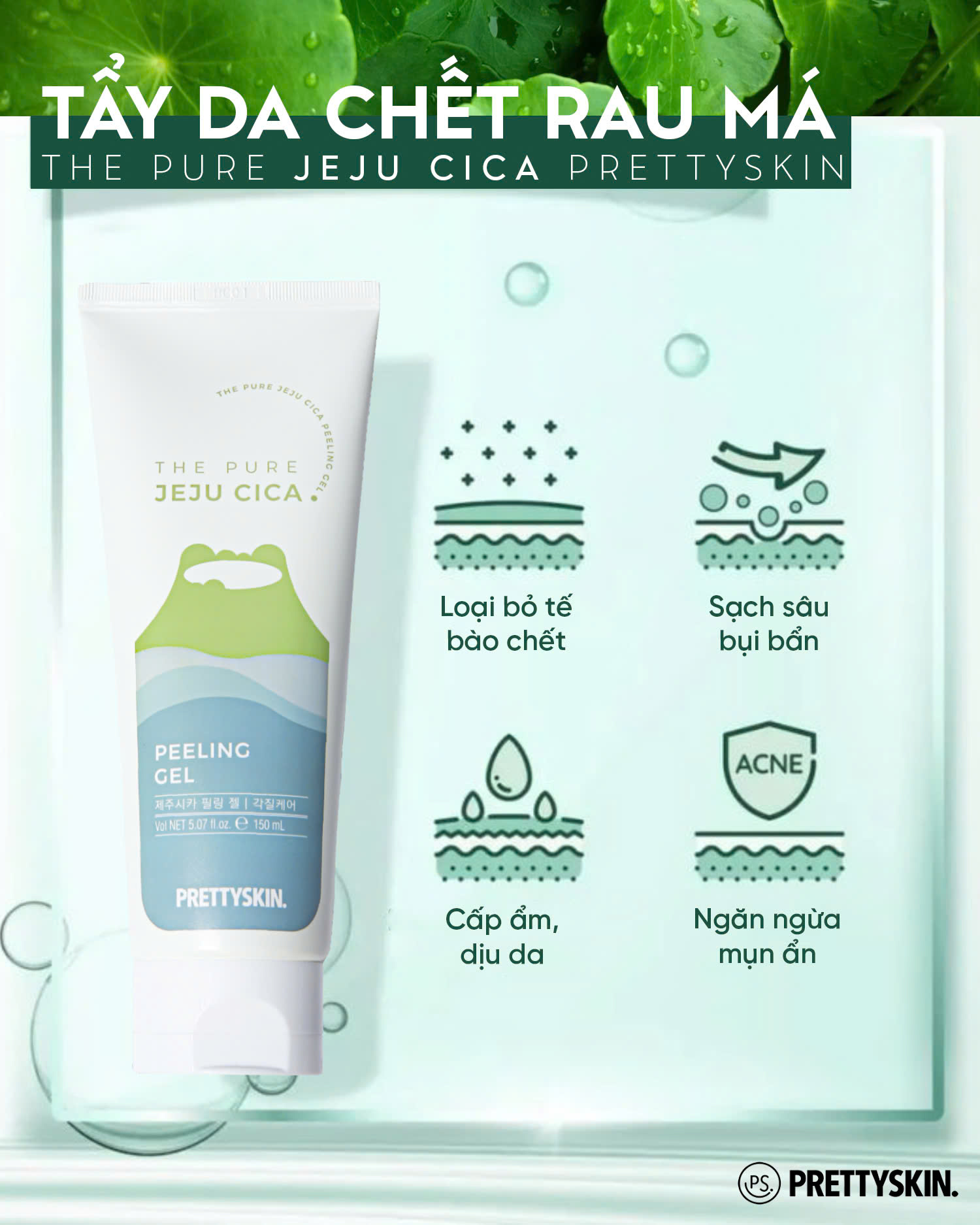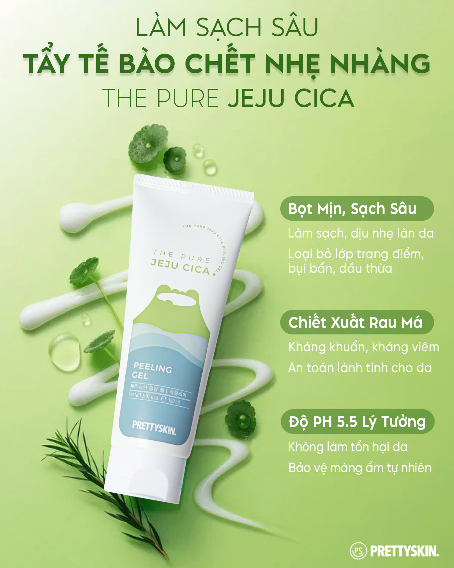 Công dụng của Tẩy tế bào chết rau má Pretty Skin The Pure Jeju Cica Peeling Gel
